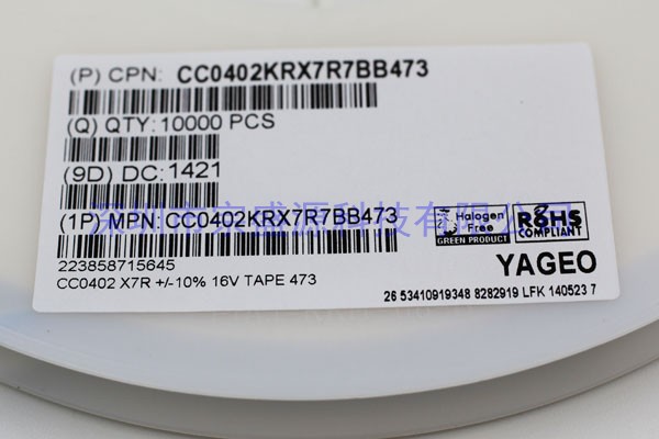 產(chǎn)品品牌:YAGEO/國巨陶瓷電容