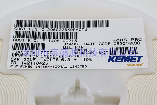 產品名稱:基美陶瓷電容 1206 6.3V 22UF C1206C226K9RACTU