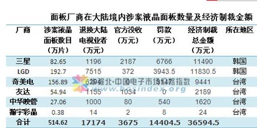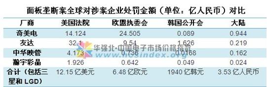 美國在2006年底開始調查亞洲面板廠涉及反柯斷法,不久韓國三星轉作污點證人,華映2008年承認事實并被美處罰金六千五百萬美元。中國發改委從2006年12月開始,陸續接到舉報,反映上述臺韓6家企業合謀操縱液晶面板價格,并開始展開調查,確認了它們違法所得合計2.08億元,發改委責令涉案企業退還大陸彩電企業多付價款1.72億元,沒收3675萬元,罰款1.44億元,經濟制裁總金額3.53億元。(據悉,目前,TCL、創維、康佳、長虹等大陸9家主要彩色電視機企業已收到了1.72億元人民幣退款。)