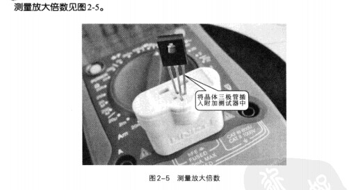 晶體三極管放大倍數的檢測方法比較簡單,檢測時打開數字萬用表的電源開關,將數字萬用表調整到三極管測量位置上,然后將附加測試器插入表筆插孔中,再將三極管插入附加測試器中,此時,液晶顯示屏上便會顯示出相應的三極管放大倍數。
